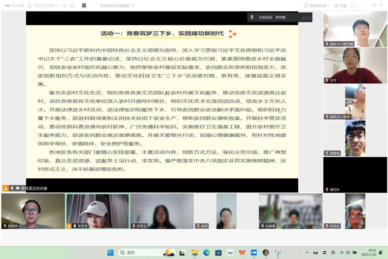 七月党日活动以“青春筑梦三下乡,实践建功新时代”为主要方向,从理论学习和实践活动两方面展开,各支部积极开展相关活动,全体党员积极投身“青春筑梦三下乡,实践建功新时代”主题实践,深入基层感悟国情民情,将课堂所学转化为服务乡村的扎实行动,在挥洒青春汗水、贡献智慧力量中彰显青年担当。在未来的成长道路上,必将始终怀抱理想、锤炼本领,以实践砥砺奋斗意志,以更蓬勃的青春风采,将志愿精神化作筑梦基层的澎湃动能,主动融入国家发展和民族复兴的伟大征程。