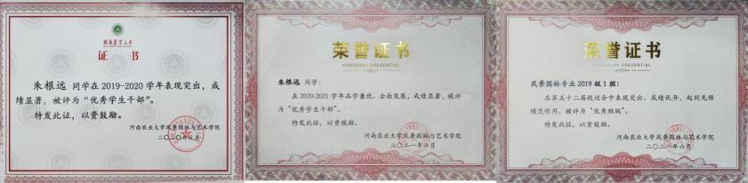 朱根远,男,中共党员,河南农业大学风景园林学院学生,现任风景园林专硕研究生设计方向第二党支部培养联系人。本科期间曾获院级“优秀学生干部”,带领班级获“优秀班级”;研究生期间获硕士研究生学业奖学金。
