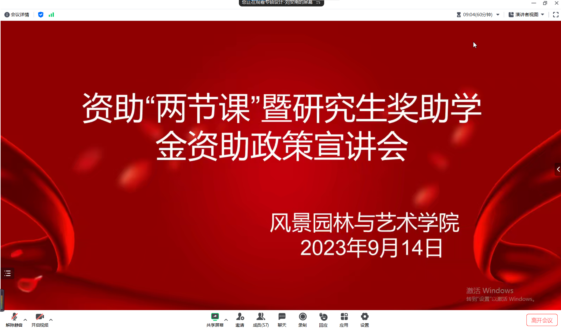 为全面贯彻落实各项学生资助政策,进一步做好学生资助政策宣传活动,让新生尽快了解我校各项奖助学金及助学贷款的申请条件与申请程序,9月14日下午,风景园林与艺术学院召开了资助“两节课”暨研究生奖助学金资助政策宣讲会。我院研究生辅导员陈鹏出席会议,研究生会全体成员以及23级研究生参会。