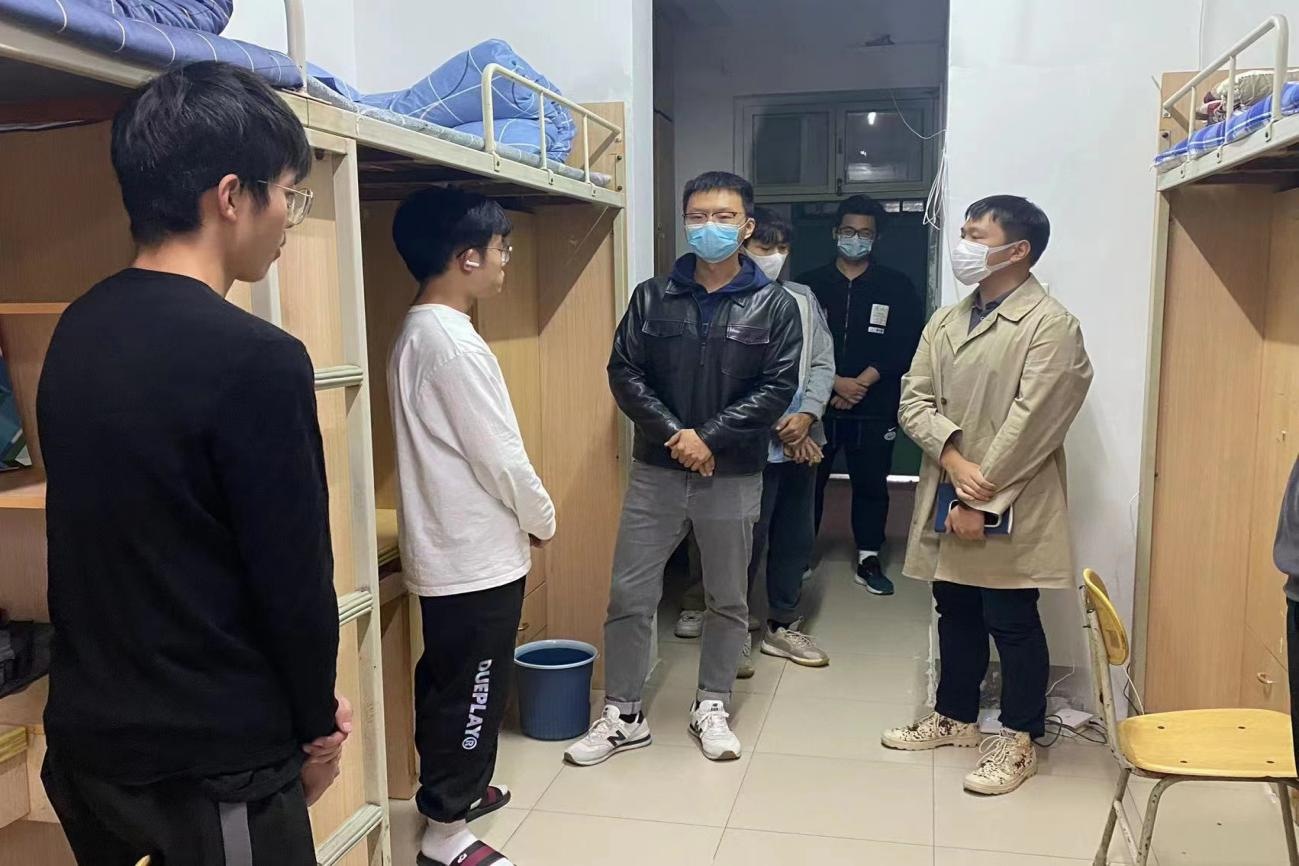 走访过程中,赵九阳叮嘱同学们要严格遵守学院各项疫情防控措施,主动进行核酸检测,按时完成健康打卡,积极配合学院疫情防控工作。学院领导老师们深入了解线上教学效果,及时帮助学生解决遇到的实际困难和问题,对线上学习生活提出一系列积极的建议,希望学生们在疫情封校期间也要认真学习专业课知识,同时不忘加强锻炼,保持身心健康,做到劳逸结合。