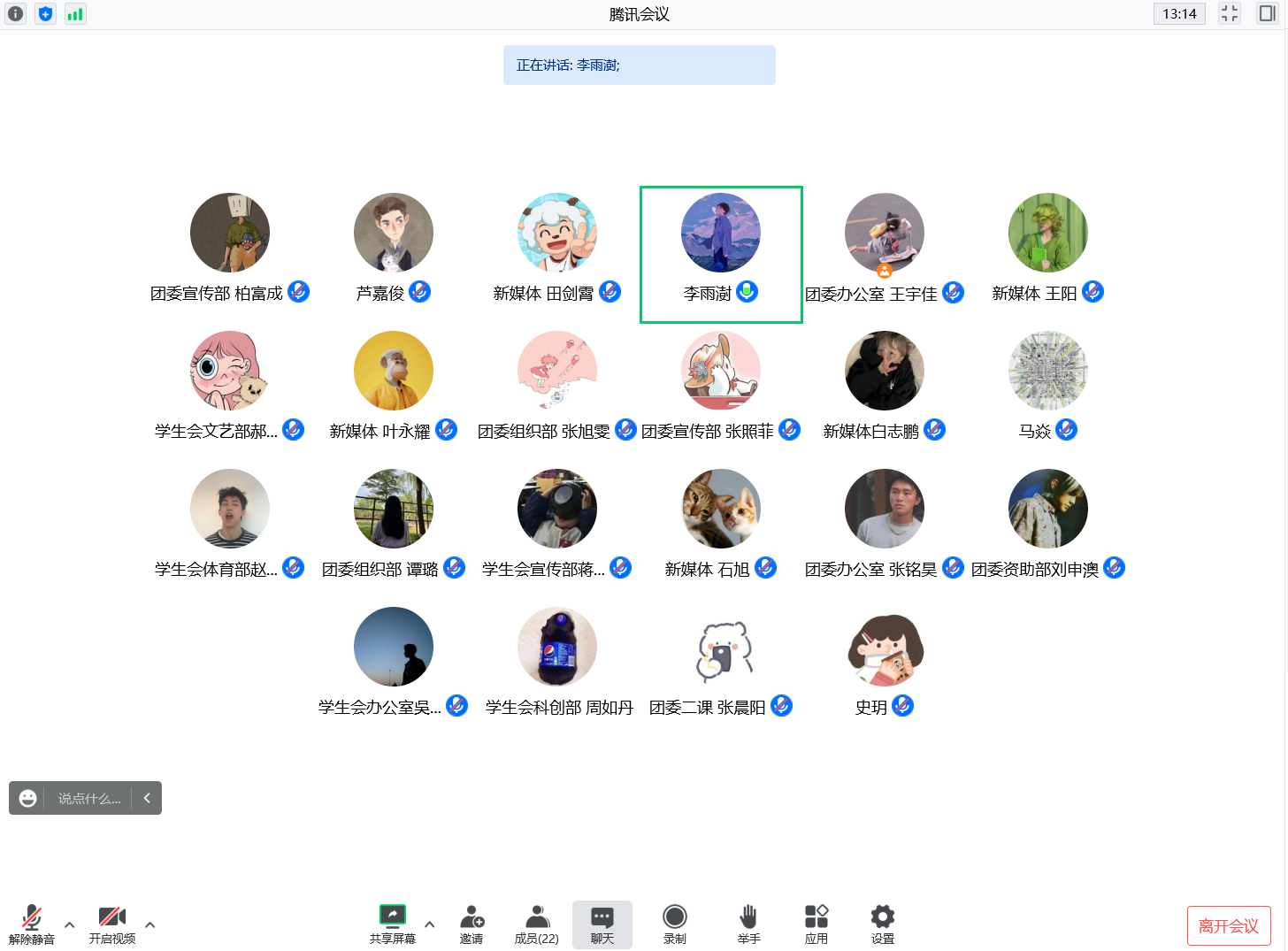 9月5日,学院召开2022年秋季学生返校工作线上会议。院团委副书记李雨澍,院团委老师史玥、马焱、芦嘉俊出席会议,各部门主要学生干部、各年级班长支书参加会议,会议由李雨澍主持。