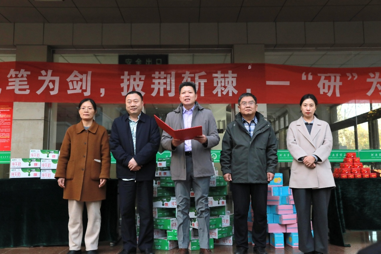 11月25日,风景园林学院在文化路校区13号楼开展“执笔为剑,披荆斩棘,一‘研’为定”考研送温暖活动。学院党委书记胡明忠、院长李永华、副院长阴予兴、各年级辅导员及毕业生班主任共同到场,为学子们加油鼓劲。