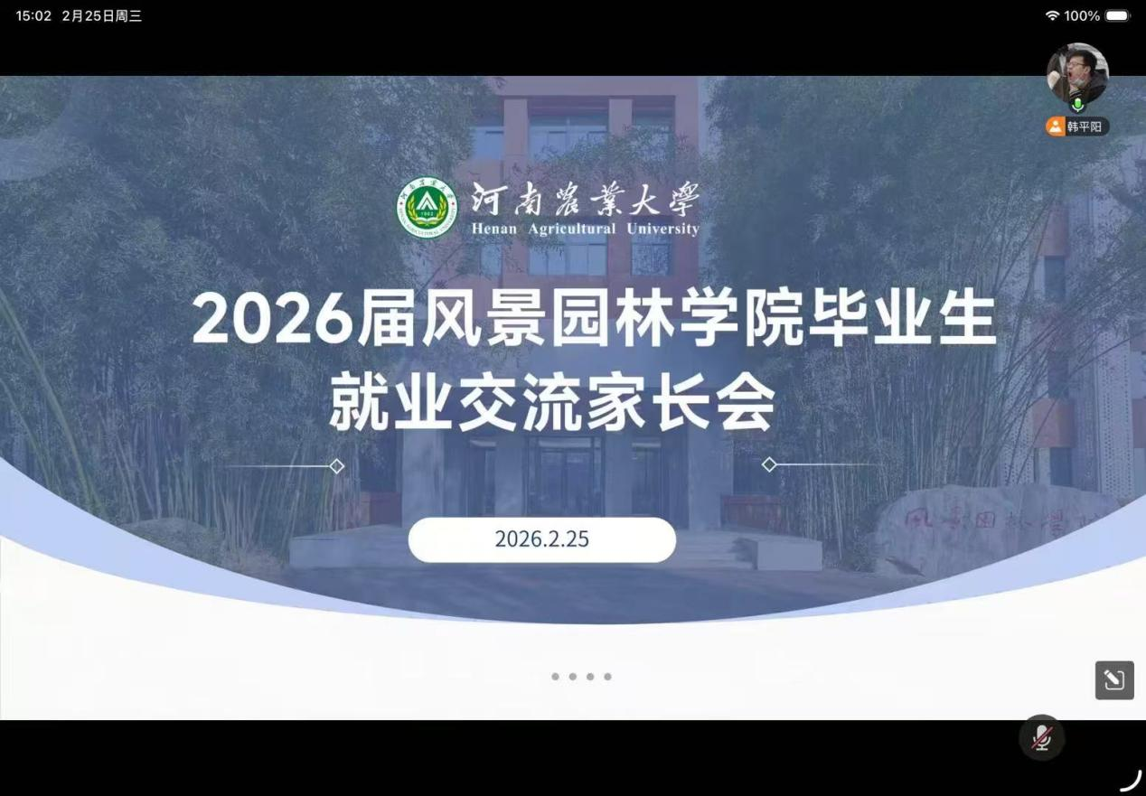 为进一步落实学校关于高校毕业生就业工作的决策部署,扎实开展“寒假促就业暖心行动”,深化家校联动育人成效,风景园林学院于寒假期间以线上会议形式,分本科生、研究生专场召开2026届毕业生就业分享交流会,多措并举推动毕业生高质量充分就业。学院毕业生辅导员、毕业生班主任、全体毕业生及部分家长代表参会。