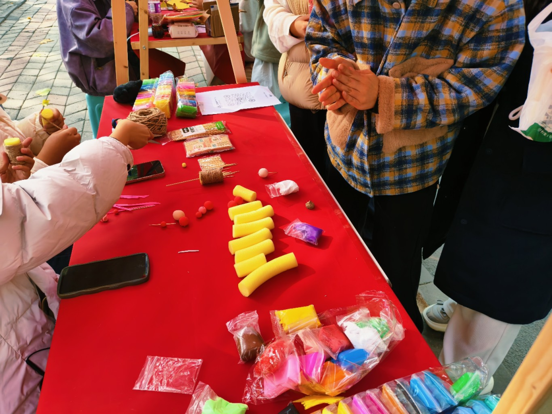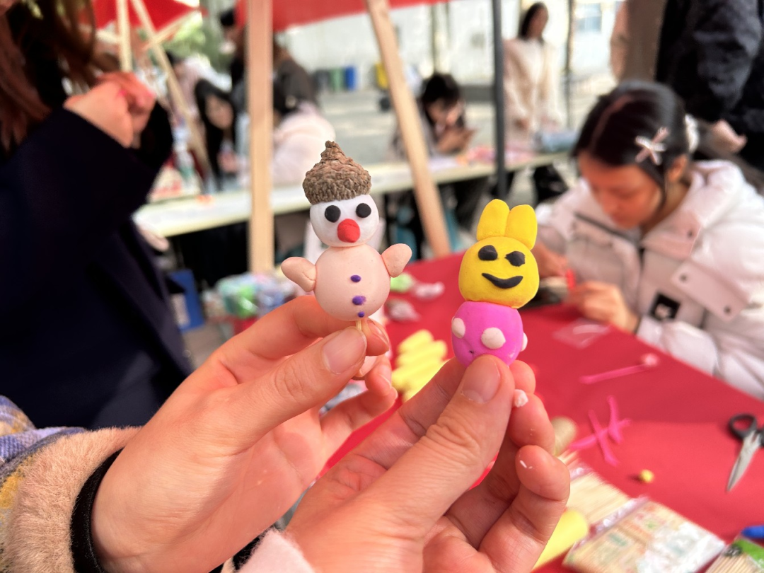 在 “ 粘土糖串 ” 活动期间,同学们用我们准备的各色粘土揉制出“果球”,通过捏、压、粘等方式为“果球”添加糖霜装饰,制作出专属于自己的“糖葫芦”。大家在创作中了解糖葫芦的传统文化,感受民俗元素,收获一段专注的治愈时光。