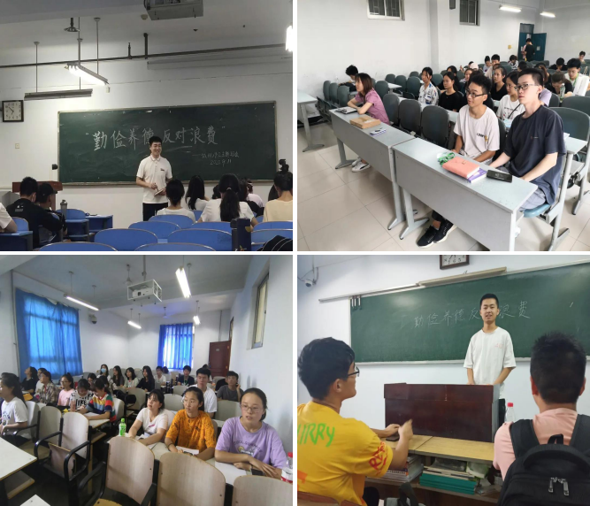 此外,我院还组织班级开展相关班会,带领学生深度了解学院“勤俭养德,反对浪费”主题活动的有关内容。班级学生以新时代优秀大学生的身份,纷纷表达了自己的班会感想。2018级产品设计1班张鑫认为节约粮食这个话题是我们从小学就已经学到的基本文明行为,做到这点是对劳动人民的基本尊重也是彰显文明传承优秀文化传统的提现之一,我们应该从自身做起,积极宣传,杜绝浪费。2019级城乡规划2班林予欣表示食堂新开了一些新窗口,种类丰富,同学们浪费食物的现象有所减少,希望学校食堂可以考虑一下设置大、小份的参量,避免造成不必要的浪费。