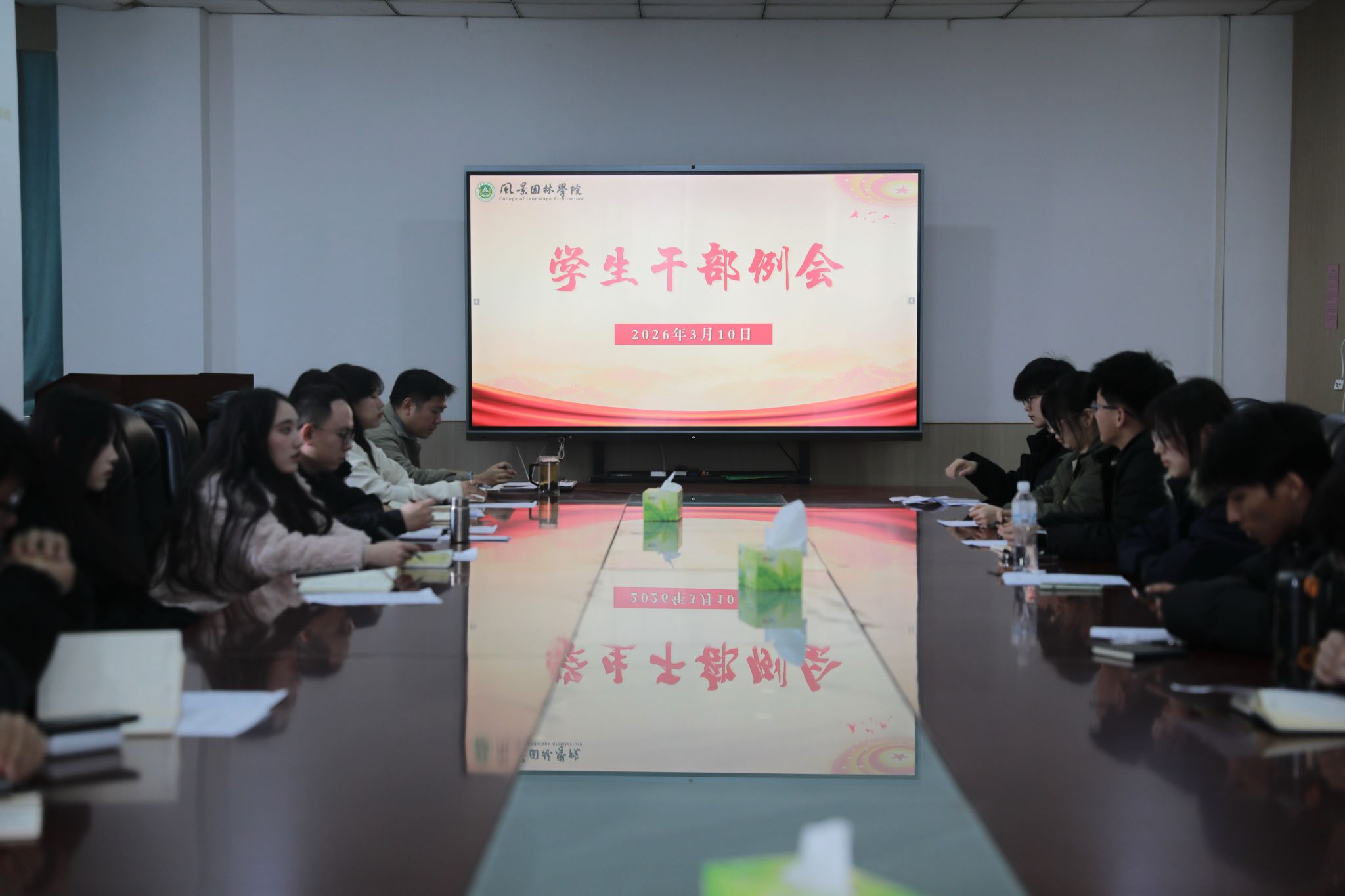 会上,各学生组织代表依次汇报本周各项工作成果,总结经验、梳理成效,为下一步工作开展奠定基础。