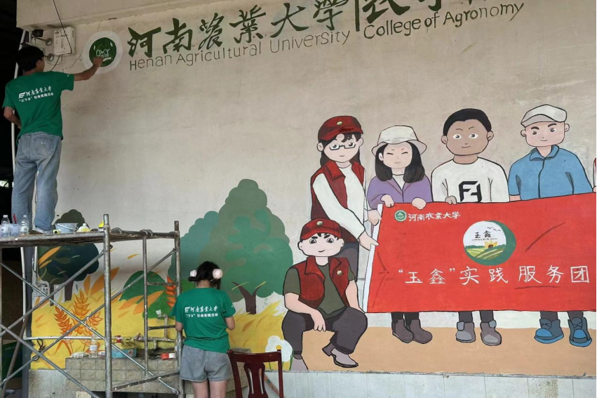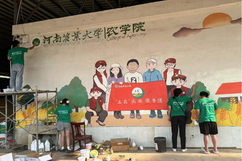 风景园林与艺术学院“艺农科技队”实践团赴河南许昌椹涧乡农学院开展墙绘活动(四)