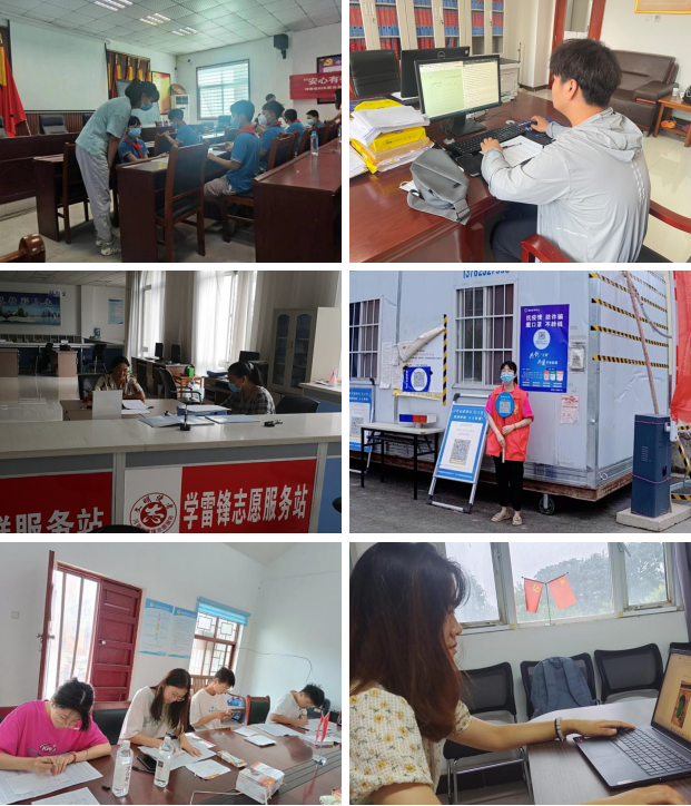2021级园林专业1班张贇、2021级园林专业2班杨欣逸参与防疫志愿活动,对外来车辆进行车牌登记和消毒,负责维持全员核酸的现场秩序、帮助群众扫码登记采集信息;2021级园林专业2班白伊欣经过专业的培训后与其所负责的村落的负责人联合将本村的户、人口的信息录入网络,进行7·20灾后重建资料审查,收集各村门户封锁的照片和资料进行入库保存,查漏补缺移交上级;2021级城乡规划专业2班郭夏欣,结合专业制作《贺生屯防汛疏散路线》,张贴安全知识海报,配合心理宣传活动,耐心对小朋友们讲解,为老人们进行信息导入和照片采集;2021级城乡规划专业2班李锦铖参加返家乡政务志愿实习,帮助整理各个部门单位的工作报告,并核对工作情况;2021级环境设计专业2班陈钰彬接待来访人员,同时复印整理文件资料、打扫卫生。