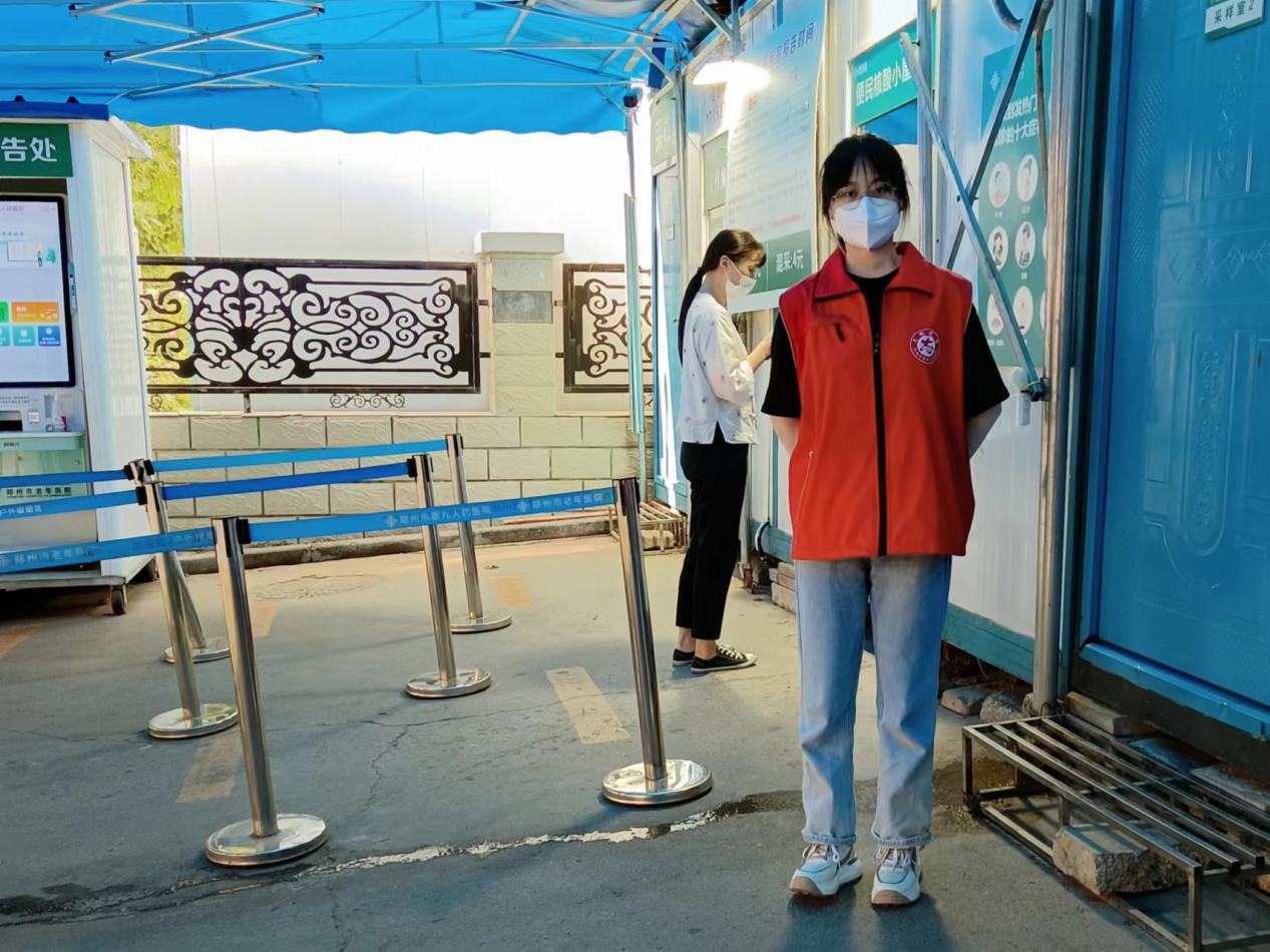 在实践中学习,在体验中成长。2021级风景园林专业1班吴梦颖在面对向基层报道社会实践活动的通知时,积极响应国家号召,报名参加并顺利成为了郑州市第九人民医院的疫情防控的一名志愿者。她配合医护人员推动义诊工作的开展,将医疗知识向更多人普及;核酸检测时,她赶赴核酸检测点位维护现场秩序、扫码、检测等工作;她帮助域外来郑人员进行返乡报备,筑牢疫情防控安全墙;此外,她还为行动不便的老人及患者提供力所能及的帮助。
