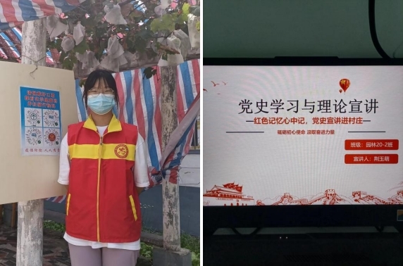 2020级园林专业2班荆玉萌选用更接地气的、更通俗易懂的、更受村民喜爱的宣讲传播方式:“谁带领我们脱贫?”“谁带领我们过上好日子?”“谁帮我们解决了我们自己的一些基本问题?”“谁将继续带领我们走更幸福的道路?”让村民百姓用自己的语言来讲述自己的感想,村民百姓自己来听,听完之后共同产生感想,动用村民的力量来动员村民,借用村民的宣讲来使党史教育更好地在村民当中广泛开展。