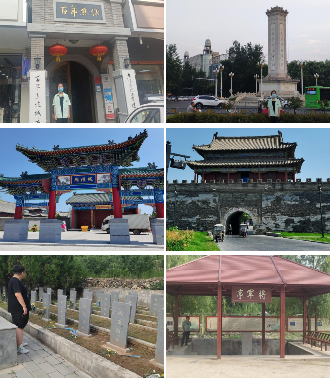 2019级风景园林专业1班李佳琪走访参观了百年焦作陈列展览馆以及东方红广场人民英雄纪念塔。了解了焦作的百年历史,学习了外资入侵、工人阶级的崛起、抗战的巨大贡献、近代城镇出现于豫北中心形成四部分内容。2020级风景园林专业1班郭玥含寻访了商丘古城及淮海战役总前委旧址纪念馆。在商丘古城,从开始围绕外城墙到进入城内,用脚步丈量宏伟建筑,感受历史深度;在淮海战役纪念馆,从一件件保留下来的文物中,再现淮海战役当时的情景,感悟红色精神。2020级环境设计专业4班张宁对家乡的红色轨迹进行寻找,走访时代老人聆听红色历史,为烈士陵园进行清理和献花。