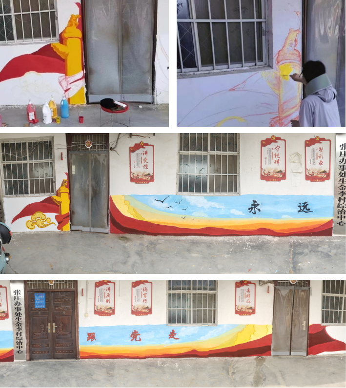 为响应家乡号召,建设美丽乡村,进一步推进乡村战略实施,我院2021级产品设计专业2班李启滢在暑期报名参加了家乡“五星”党支部墙体彩绘活动。