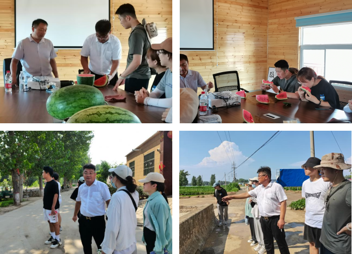 7月12日下午,社会实践团来到当地教学科研实习基地了解该镇乡村振兴改革工作,探索社会实践方向。沟通交流中,实践团认真听取了马楼镇扶贫办公室主任黄良勇有关于该镇农村改革发展工作情况,了解了当地以产业发展带动乡村振兴的发展战略。李胡村党支部书记郭新增带领实践团队共同品尝了当地采取新技术种植的西瓜,亲身体验新技术下农作物的发展成果。随后,李胡村党支部书记郭新增带领团队成员前往李胡村中进行参观考察,他介绍了当地的特色农作物,并对未来的产业建设提出了自己的规划。通过此次参观考察,实践团队对农村生活,农村发展有了深入了解,纷纷表示将在社会实践过程中用专业知识弘扬志愿服务精神。