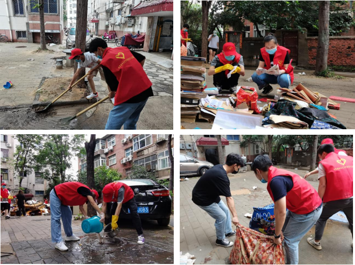 活动中,三十余名研究生和本科生志愿者投身防汛一线,筑起景艺堤坝。到达现场后,志愿者们上楼挨户询问,了解汇总需要清理的地下室情况。志愿者们结合居民需求,迅速搬运地下室书籍,并将清理出的书籍分拣归类。清扫地下室垃圾和污水,坚持将灾后损失降到最低。在小区道路上,志愿者们用铁锨、扫把等工具把垃圾、淤泥集中处理,开展路面清淤工作,防止细清障菌蔓延,确保社区内的环境卫生。伴随着阴雨连绵,学院共产党员冲锋在前,迎难而上,共青团员紧随其后,坚定向前,热情高涨,坚持为洪后恢复办实事。