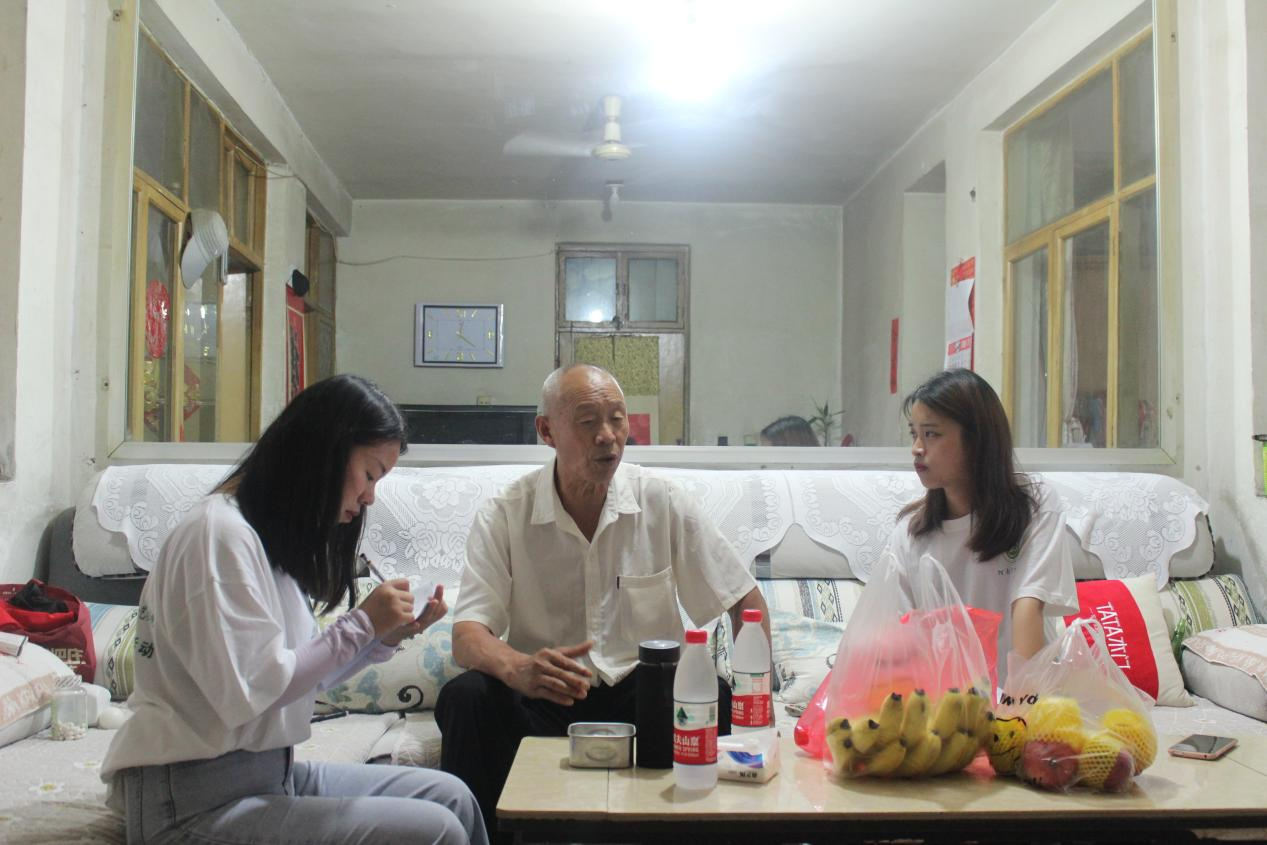 7月4日,实践团来到了修渠“小老虎”张买江爷爷家中。通过张买江老人的讲述,实践团了解到,在修建红旗渠之前,林县由于常年干旱缺水导致的极度贫瘠,“吃水好比吃油难”就是当时最真实的生活写照。老人还豪情满怀地谈起上世纪六十年代,林县劳动人民在共产党领导下,在艰苦的自然环境和匮乏的物资条件下,十万大军,十年春秋,天当被、地当床,啃树皮、吃野菜,仅凭着一锤一钎一双手在太行绝壁上修筑了全长1500公里的“人工天河”红旗渠。张买江老人13岁上工地,9年修渠未离开工地回过家。同学们为林县人民和张买江老人艰苦创业的奋斗精神,“土法”修渠的创造智慧所深深感动,纷纷感叹革命前辈建设新中国的艰辛不易。