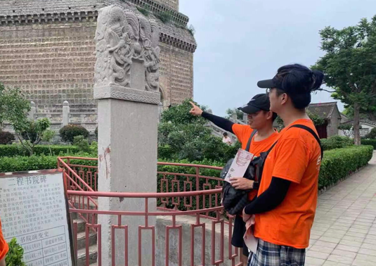 青年学子唯有深入实践,才能深切感受前进的脉搏。我院“三下乡”社会实践团队在上午集合完毕后,随当地的负责人于寺院内寻找有关于记载我校办学历史的双面石碑,这两块石碑的记载内容体现了当年农大的办学理念。经过一系列的参观学习,在负责人的讲解下,如今繁塔对面的古吹台内建筑正是早期学校实验楼与教师公寓,但在战火纷飞中都未幸免于难,仅剩塔前一块名为“二成书院碑”的石碑,其所记载的书院演变史为团队的探寻提供了证据和史料。团队成员结合文献资料和当地遗留的建筑古迹,初步了解和学习禹王台的悠久历史与早期农大发展历程之间的关系,进一步感受百年农大办学路的艰辛历程,奋发图强,珍惜在校时光。