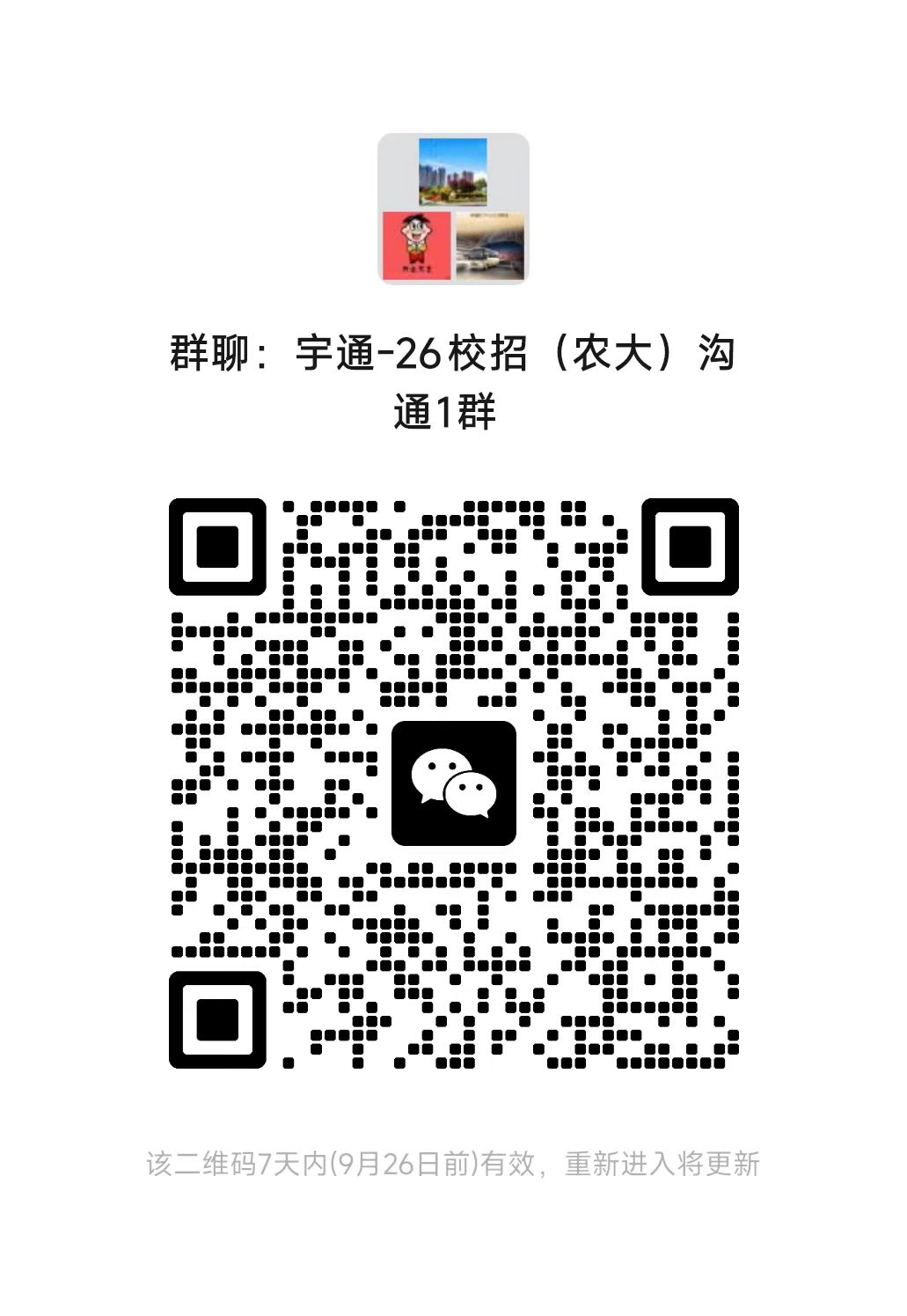 ③微信群沟通:扫描下面专用二维码直接加入宇通校招微信群,更多招聘信息及时传递。