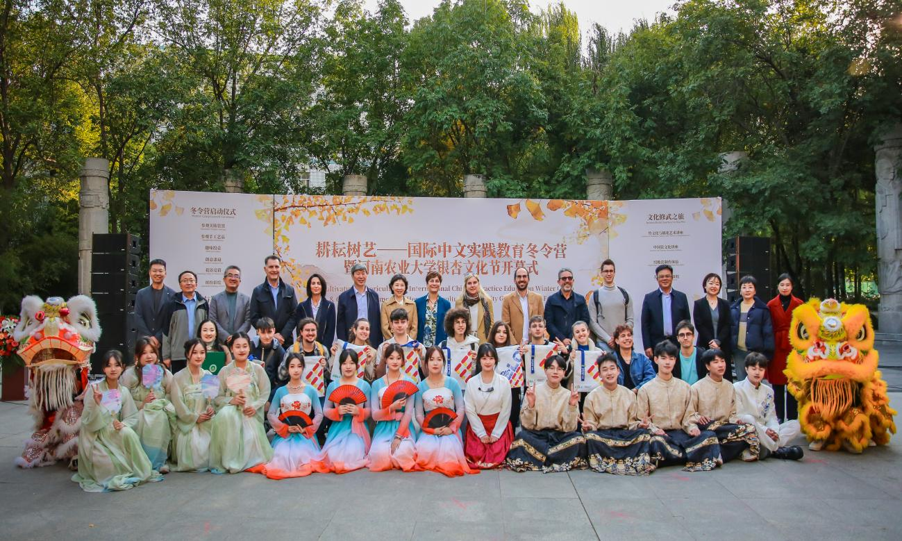 11月5日下午,由河南省教育厅主办,河南农业大学承办的“耕耘树艺”国际中文实践教育冬令营暨河南农业大学银杏文化节启动仪式于河南农业大学文化路校区牧医广场顺利举行。马尔凯大区教育办公室主席达米科教授、副主席迪埃米迪奥教授、马尔凯高等技术学院校长巴尔迪尼教授、课程主任安德雷纳齐教授、切萨雷蒂教授、马尔凯理工大学经济学院卡塔拉诺教授、河南省教育厅对外合作与交流处处长王华星、河南农业大学副校长杨喜田、国际交流合作处处长屠克、校党委学生工作部部长徐峰、校团委副书记雷雯、风景园林与艺术学院党委书记侯永华出席活动。仪式由侯永华主持。