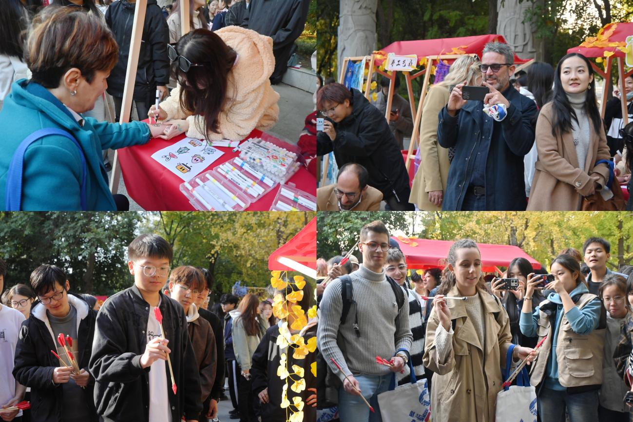 启动仪式结束后,河南农业大学银杏文化节活动正式开始。本次银杏文化节以汉语为桥梁,以银杏文化为纽带,结合我院专业特点,以银杏叶为素材展开的手工艺品参观体验、美陈装置观赏、趣味投壶、创意漆扇、花语竞猜和缤纷彩绘等一系列项目展示了学院学生独特的想象力和创造力。一件件作品精巧细致、新颖独特、形式多样,展现了学生们浓厚的艺术发展兴趣和扎实的动手实操能力,为中意双方师生带来了一场视觉盛宴。