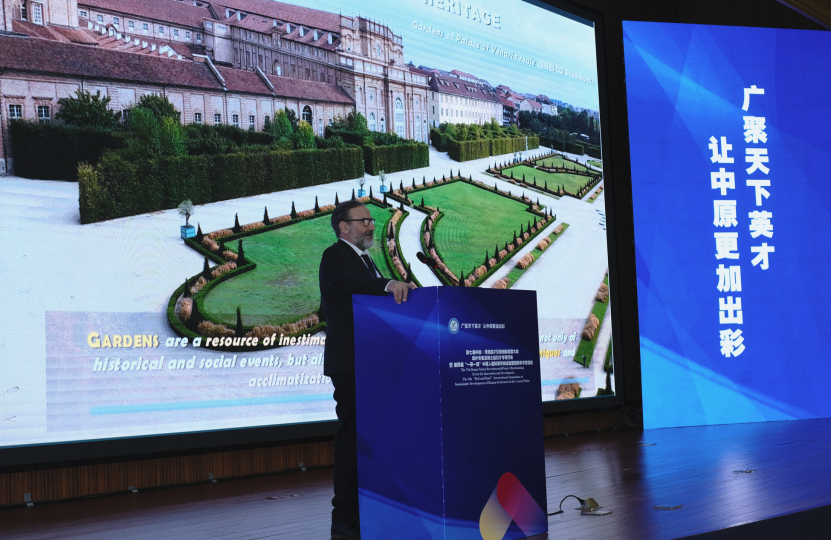 都灵大学农林与食品学院副院长、都灵农业协会主席马可•德维基在报告中介绍了皮埃蒙特的历史花园和联合国教科文组织景观。