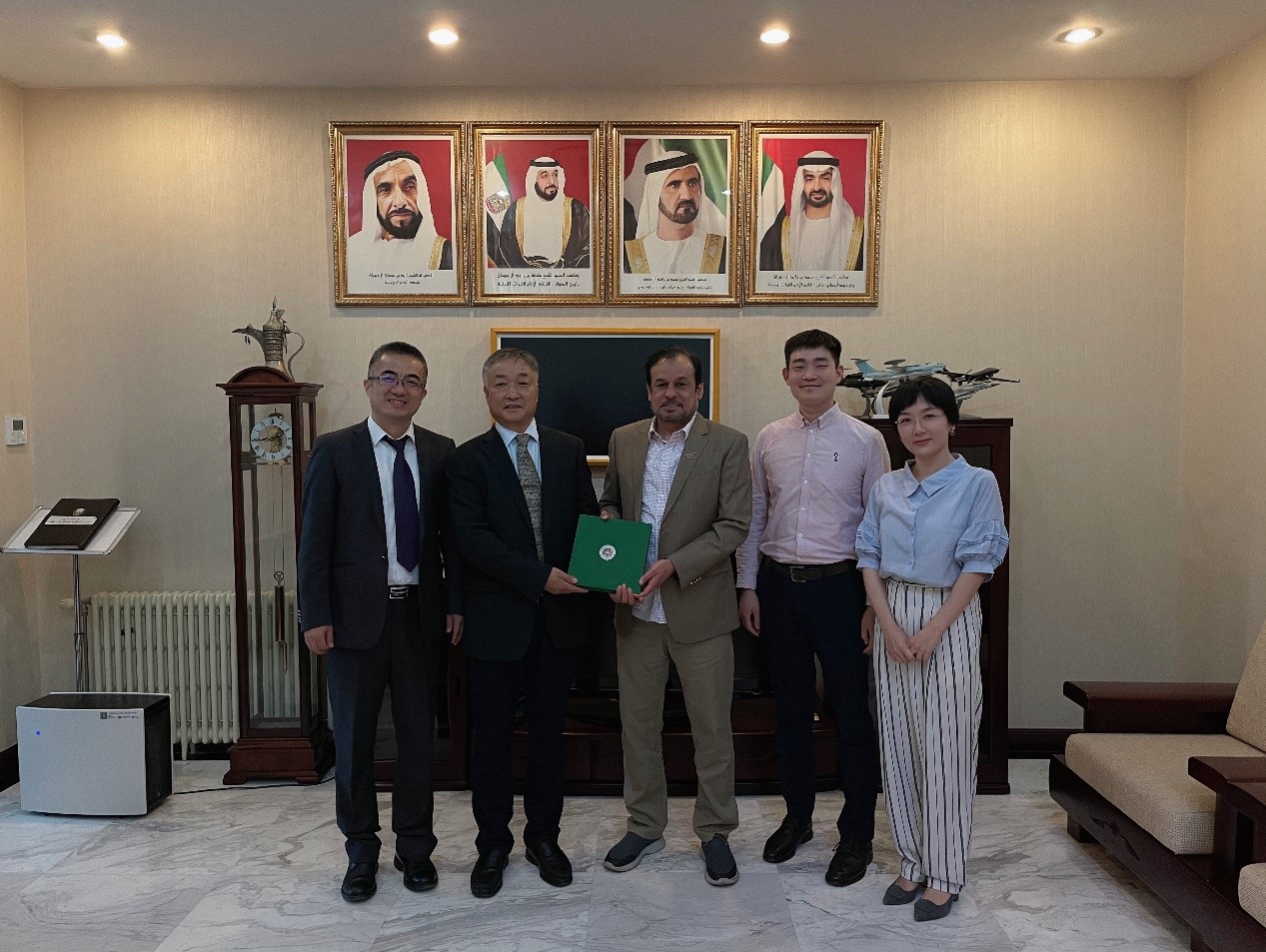 6月17日下午,我院与阿联酋驻华使馆在北京举行高校教育合作交流会,阿联酋驻华使馆武官处国防武官兼教育参赞(准将)艾哈迈德哈桑马齐米、武官助理苏勒塔阿勒曼苏里、校国际交流合作处处长屠克、我院院长田国行、风景园林国际联合实验室教师蒋鹤、刘洋参加了会议。