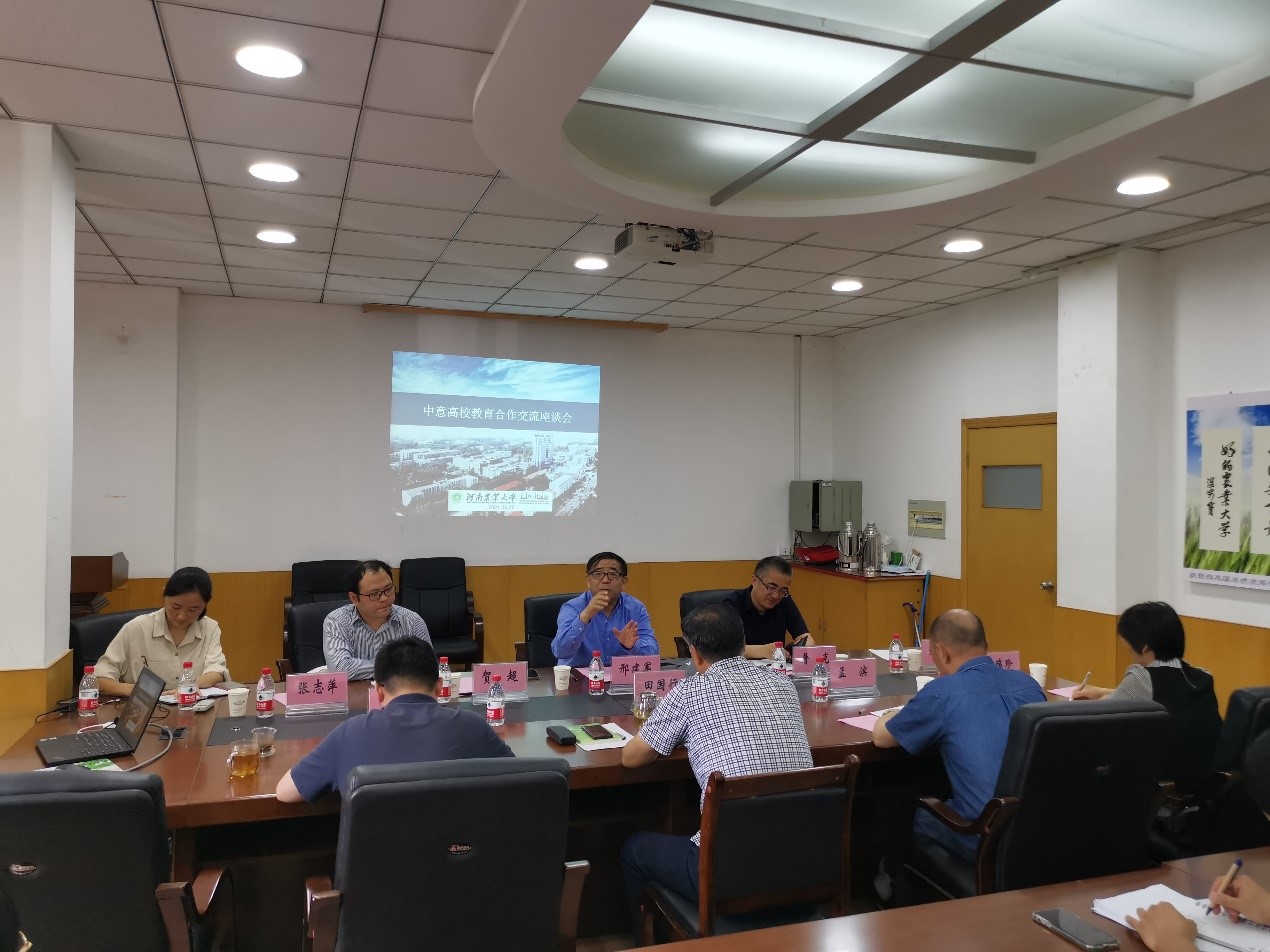 接着,田国行介绍了我院的专业学科发展、国际合作交流等基本情况。自2016年来,我院依托河南省风景园林国际联合实验室等平台,邀请了多国各研究方向专家莅临我校进行学术交流,且每年输送多名学生出国深造。我院已组建乡村振兴研究团队,与意大利佩鲁贾大学农学院达成初步合作意向,希望在教学与科研方面同更多的意方高校开展多形式、多层次合作,实现双方的合作交流,实现资源的合理利用,共同培养优秀人才。